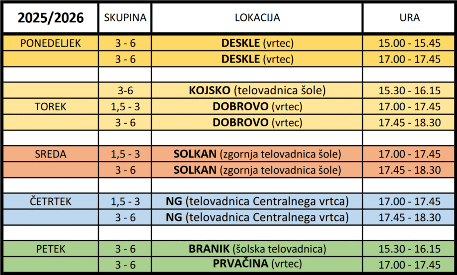 - V garderobe pridite vsaj 5min pred začetkom vadbe, da se otroci preoblečejo v športno opremo in odidejo na WC!
